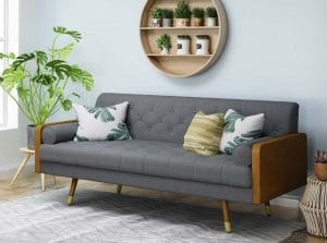 Sofa dengan jenis ini biasanya memiliki dua bantalan dan dapat dilipat maupun direbahkan, seperti tempat tidur. Bagi Anda yang sedang menghemat ruang dari hunian Anda, mungkin futon sofa bisa menjadi pilihan yang tepat bagi Anda.