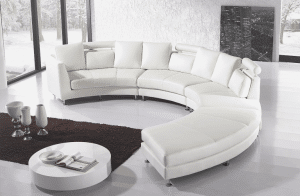 Bagi Anda si pecinta anti-mainstream, sofa dengan bentuk bulat ini bisa menjadi pertimbangan untuk pemilihan sofa Anda. Bentuknya yang unik dan terkesan sophisticated sangat cocok bagi Anda yang suka hal-hal unik. Dengan penambahan meja bundar pada tengah sofanya, itu akan lebih memberi kesan yang sangat apik dan memperkuat tampilan hunian Anda yang minimalis.