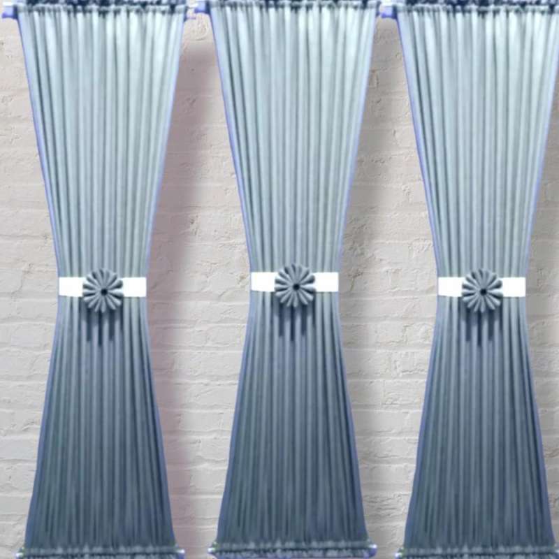 Inspirasi desain yang satu ini juga dapat Anda pilih karena tampilan warna biru muda yang menenangkan sehingga cocok untuk ruangan. Anda bisa memilih gorden ku-kupu warna ini dilengkapi dengan tali pengikat berbentuk bunga. Sehingga, dengan ini tampilan gordennya akan terlihat lebih feminine dan juga enak dipandang.
